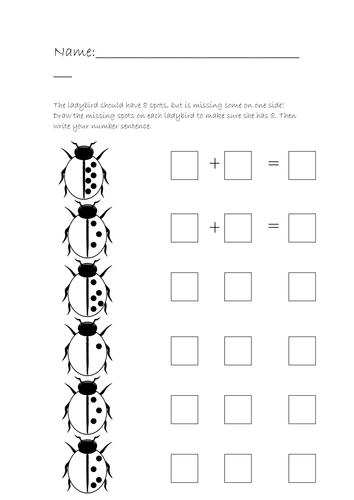 Ladybird Number Bonds Worksheet. Using number bonds allows children to approach addition facts. How to use these ladybird number bond sheets: Use these lovely Fingerprint Activity Sheets to help develop children's maths skills.